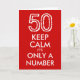 Keep calm it's only a number 50th Birthday greeting card. Funny Keep Calm and Carry On parody for 50 year old. Make your own age specific Keepcalm spoof with custom number. Cute fiftieth Birthday gag gift idea for men and women. Surprise your over the hill dad, mum, husband, wife, uncle, aunt, grandpa, grandma etc. Hilarious age joke for fifty Birthday celebration. Vintage slogan with custom background colour.