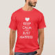 Keep calm just married t shirts for newly weds / married couple. Vintage Keepcalm t shirts | Customisable for men and women. Customise crown and text with your own funny quote or humourous saying. Design your own Keepcalmandcarryon shirt easy and quick.