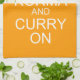 This fun tea towel features a parody of the famous English war-time posters, the inspiring "Keep Calm and Carry On", This kitchen and parody, "Keep Korma and Curry On", with crown and knife and fork in white. Background colour is customisable.