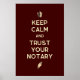 Funny professional cover Keep calm and trust your notary quote text with ink pen crown and feather pen in gold tones. Great detail for notary public and loan signing agent office.