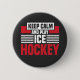 Hockey theme button with text of black, white, and red that reads Keep Calm And Play Ice Hockey!