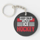 Hockey theme keychain with text of black, white, and red that reads Keep Calm And Play Ice Hockey!