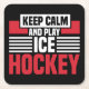 Hockey theme coaster with text of black, white, and red that reads Keep Calm And Play Ice Hockey!