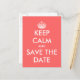 Keep calm save the date postcard | Coral pink
