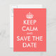 Keep calm and save the date postcard | Personalizable design for wedding guests. Elegant script text on the back for message of bride and groom.