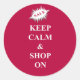 Keep calm & shop on classic round sticker