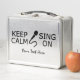 This is a standard metal lunchbox that appears to work just fine. We designed this box ourselves with an uploaded photo and custom text on the front and back. It looks absolutely beautiful except the front of the lunchbox is not centered like it shows in the photo. The print borders don't align with the inset flat part of the box where the preview photo online showed it perfectly centered in there. The back looks nice and centered though.