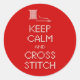 Keep Calm and Cross Stitch embroidery with a royal crown. Take a deep breath. This is a test; it is only a test. If it were an actual emergency, you would have been notified. So make a cup of tea, sit in the really comfortable chair, and adjust the lamp just right. Take out the needle and thread and reach for that peaceful inner gear that says relax, Keep Calm and Cross Stitch. Slow, quiet, patient, thoughtful stitching works just about every time.