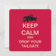 KEEP CALM Tailgate Graduation Party Invitations. Easy to customise by adding your party details to the back (time, date, place) at no extra charge. Fun parody-inspired design feature pickup truck motif joined with text in white on a red background. Envelopes included. Volume discounts available!