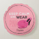 Keep Calm and Wear Pink (round throw pillow) is a digital graphic art design. A marabou ladies high heel shoe created in hot pink and black. The tag inside the shoe reads: Pink-a-licious. The text is white, textured black and pale pink. The background on both sides of the pillow is pink. A text area is in place at the bottom for you to personalise with. Edit the text as you like. Delete the text if it's not wanted.