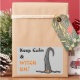 This cute Halloween sticker features a tall black witch hat on one side, and the text Keep Calm & Witch On in orange and black on the other side. The text is customisable, so you may make it say whatever you'd like. Cute!