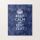 Keep Calm Your Text on Blue Digital Camouflage Jigsaw Puzzle