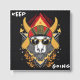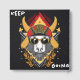 A bold, motivational graphic featuring a cool ram wearing a red helmet and sunglasses, with the words "KEEP GOING" on the top and bottom. The ram’s face is stylised with intricate line work, surrounded by geometric shapes and patterns in shades of red, gold, and black. The design exudes strength, resilience, and determination, with the ram's horns symbolising perseverance. The background features a dynamic starburst and layered patterns, adding depth and energy to the overall composition.