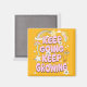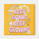 Retro style motivational "Keep going keep growing" text design with mushroom, flowers, stars, rainbow, clouds and sun decoration