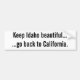 Keep Idaho beautiful......go back to California. Bumper Sticker