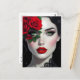 Keep in Touch | Beautiful Woman with Red Rose Postcard