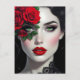 Keep in touch with this beautiful postcard featuring an ai illustration of a black and white woman with red roses.