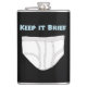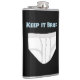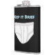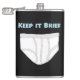 The flask itself is fine. It’s a cheap flask, obviously bought in bulk, however am prepared to overlook that. Given that it is a personalized item, I would have liked to have seen gift boxing instead of the generic packaging. Terrible printing, and/or quality. It’s a cheap, tacky vinyl. It is not cut straight and is also applied in a way that it is overhanging the bottom, causing the glue to catch on items and it will eventually roll and tear, damaging the wrap.