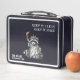 This is a standard metal lunchbox that appears to work just fine. We designed this box ourselves with an uploaded photo and custom text on the front and back. It looks absolutely beautiful except the front of the lunchbox is not centered like it shows in the photo. The print borders don't align with the inset flat part of the box where the preview photo online showed it perfectly centered in there. The back looks nice and centered though.