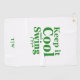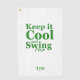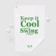 Keep your head cool in style with this playful golf-themed towel! Featuring the fun text "Keep it Cool and Swing" alongside a whimsical graphic of a bouncing golf ball, this towel is perfect for any golf enthusiast. Ideal for holidays, birthdays, retirements, or any special occasion, this towel makes a perfect gift.
