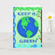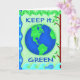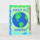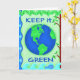 Keep the earth green and show your support with this eco friendly art design greeting card. Great reminder to recycle and to keep the earth beautiful and free from pollution. “Keep It Green” is original art representing all of the earth - the blue seas with a whale, the blue sky and heavens with stars, a tree in the forest, green leaves surrounding the planet earth. The background is green with words of “Keep it Green” surrounding the earth. "Keep it Green" is original art by Phyllis Dobbs and is available on multiple coordinating products.