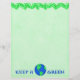 Keep the earth green and show your support with this eco friendly art design stationery. Great reminder to recycle and to keep the earth beautiful and free from pollution. “Keep It Green” is original art representing all of the earth - the blue seas with a whale, the blue sky and heavens with stars, a tree in the forest, green leaves surrounding the planet earth. The background is green with words of “Keep it Green” surrounding the earth. "Keep it Green" is original art by Phyllis Dobbs and is available on multiple coordinating products.