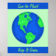 Keep the earth green and show your support with this eco friendly art design poster. This poster is a great reminder to recycle and to keep the earth beautiful and free from pollution. The earth globe is centred between two customisable dark blue srips on a light green background. The blue strips contain the words "Save the Planet" and "Keep it Green", but you can customise this poster to put your own words or personalise with your group, organisation, business or your own name or other words on the two strips. “Keep It Green” is original art representing all of the earth - the blue seas with a whale, the blue sky and heavens with stars, a tree in the forest, green leaves surrounding the planet earth. "Keep it Green" is original art by Phyllis Dobbs and is available on multiple coordinating products to promote Earth Day and a clean earth. Fully customisable.