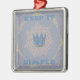 The central motif showcases a symbolic blue and gold crown, representing focus and inner royalty. This crown is set against a dynamic, geometric background: a soft lavender/light blue grid pattern overlaid with a radiating starburst in muted purples and creams. The powerful message "KEEP IT SIMPLE" boldly frames the top and bottom of the design in a coordinating light blue. This elegant combination of clean geometry and motivational symbolism in a sophisticated, lighter shade is ideal for anyone seeking clarity and a mindful approach to their daily life with a calm, understated aesthetic.