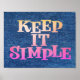 Bold, colourful typography with a grungy texture on a blue denim background says 'Keep It Simple.' This sloagn is one of the a familiar concept in successful recovery programs like as Alcoholics Anonymous, Narcotics Anonymous, Al Anon. It's also good advice for anyone wanting to live a successful, well-balanced life.