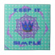 The central motif showcases a symbolic blue and gold crown, representing focus and inner royalty. This crown is set against a dynamic, geometric background: a teal/mint grid pattern overlaid with a purple and white radiating starburst. The powerful message "KEEP IT SIMPLE" boldly frames the top and bottom of the design. This combination of clean geometry and motivational symbolism is ideal for anyone seeking clarity and a mindful approach to their daily life.