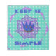 The central motif showcases a symbolic blue and gold crown, representing focus and inner royalty. This crown is set against a dynamic, geometric background: a teal/mint grid pattern overlaid with a purple and white radiating starburst. The powerful message "KEEP IT SIMPLE" boldly frames the top and bottom of the design. This combination of clean geometry and motivational symbolism is ideal for anyone seeking clarity and a mindful approach to their daily life.