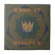 The central motif showcases a symbolic blue and gold crown, representing focus and inner royalty. This crown is set against a dynamic, geometric background: a brown/taupe grid pattern overlaid with a radiating starburst in muted purples and creams. The powerful message "KEEP IT SIMPLE" boldly frames the top and bottom of the design. This elegant combination of clean geometry and motivational symbolism in a sophisticated brown shade is ideal for anyone seeking clarity and a mindful approach to their daily life with a warm, understated aesthetic.