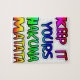 This clear arrangement makes the message easy to read, while the white background provides a clean canvas that allows the colourful text to stand out.