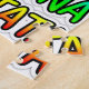 Each word boasts a unique and vibrant colour scheme, creating a delightful rainbow effect: