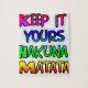 This artwork prominently features the phrase "KEEP IT YOURS HAKUNA MATATA" arranged in a stacked format. Each word is rendered in a distinct, vibrant colour with a bold black outline, creating an eye-catching and cheerful design.