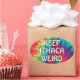 Keep Ithaca Weird with this funny sticker to support local business as well as the arts, the unusual and eccentric in the college town of Ithaca, New York. Colourful tie dye background.