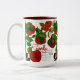 Beautiful bright design two-tone mug with a printed image of an acrylic painting with red delicious apples.
