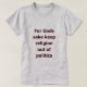 This design is ironic by choice. Many people will not agree with the sentiment but it can be argued that any time religion is involved in politics things get weird, ugly and divisive.