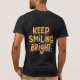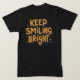 This vibrant t-shirt design features the phrase "Keep Smiling Bright" in a playful, colourful font. The design is perfect for anyone who wants to spread positivity and good vibes.