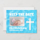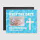 Magnetic "Keep the Date" Christening reminder. Simple Christening design of water and a cross with space for a photo.