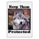 A close up of a beautiful wolf in the cross hairs with the words Keep them Protected surrounding it. Don't let the wolf be removed from the protected list. Show your love of the wolf
