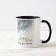A white ringer mug with a black handle and rim and a watercolour painting of a goose, battling through a storm, front and back. An ideal gift for someone who is going through hard times. See also matching greeting card and other gifts.