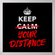 A social distancing slogan that's a fun twist on 'Keep Calm and Carry On' ... Keep Your Distance is a not so subtle reminder to keep everone safe.
