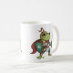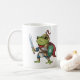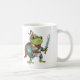 Frog warrior in armour with sword and shield, with a menacing expression, ready for battle.