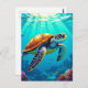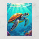 Beautiful ai illustration of a sea turtle swimming through the ocean with vibrant colourful postcard. If you are travelling, vacationing or just collect postcards, here is a unique one for you!