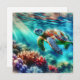 A postcard to keep in touch. An ai illustration of a sea turtle swimming in the ocean.
