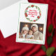 Modern poinsettia Christmas wreath in gold, green and red with christmas greeting and 10 photo collage and family names and year to personalise and share with your loved ones.