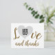 A white postcard to add your own photo inside the shape of a heart of love, written "love and thanks" in handwritten font style... an elegant idea to say thank you to those who have been with you at your wedding
