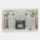 Keeshond Christmas Puppy Dog by Fireplace Painting Tea Towel