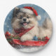 Keeshond Dog in Sledge Let it Snow Christmas Paper Plate
